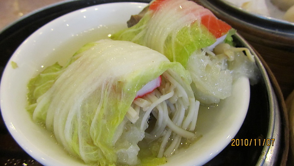 從名字就可以猜出怎麼回事,白菜捲著海鮮和另一些蔬菜,